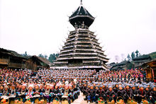 高层。在侗族历史上,凡有重大事宜商议,起款定约,抵御外来官兵骚扰,均击鼓以号召群众。由寨中“头人”登楼击鼓,咚咚鼓声响彻村寨山谷,就能迅速把人集中起来。无事是不能随便登楼击鼓的。